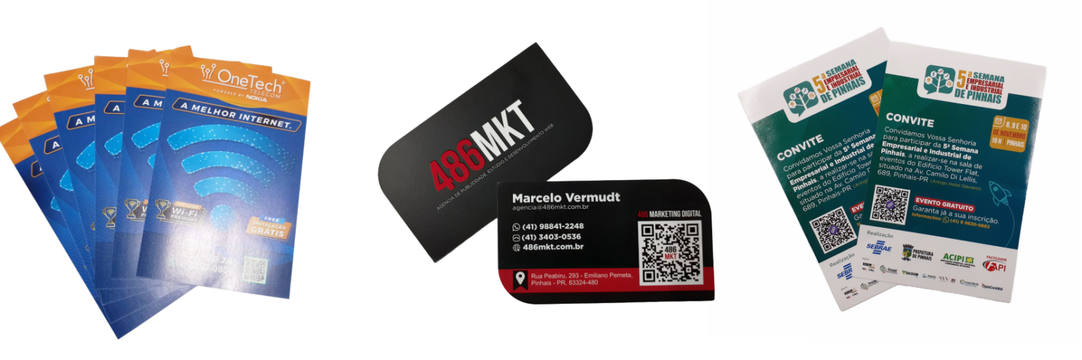 O bom cartão de visita ainda é muito utilizado, com a opção do QR Code ele voltou a ser popular, aqui na 386 Print, temos todas as opções do mercado.